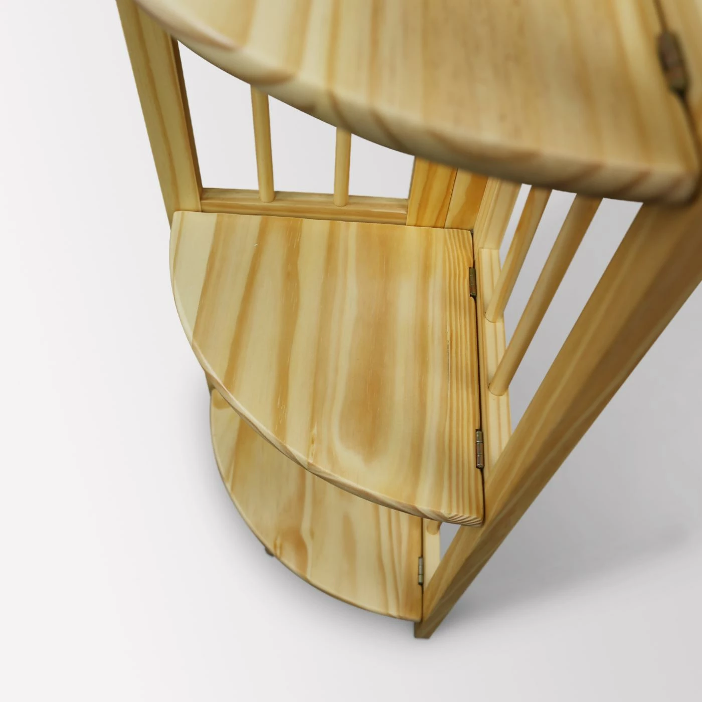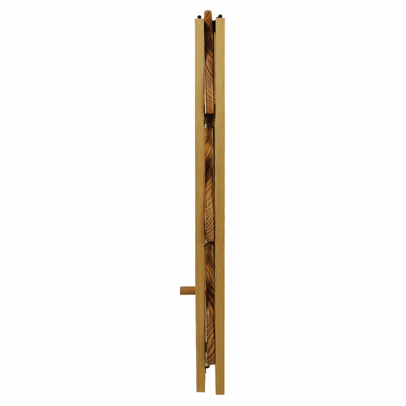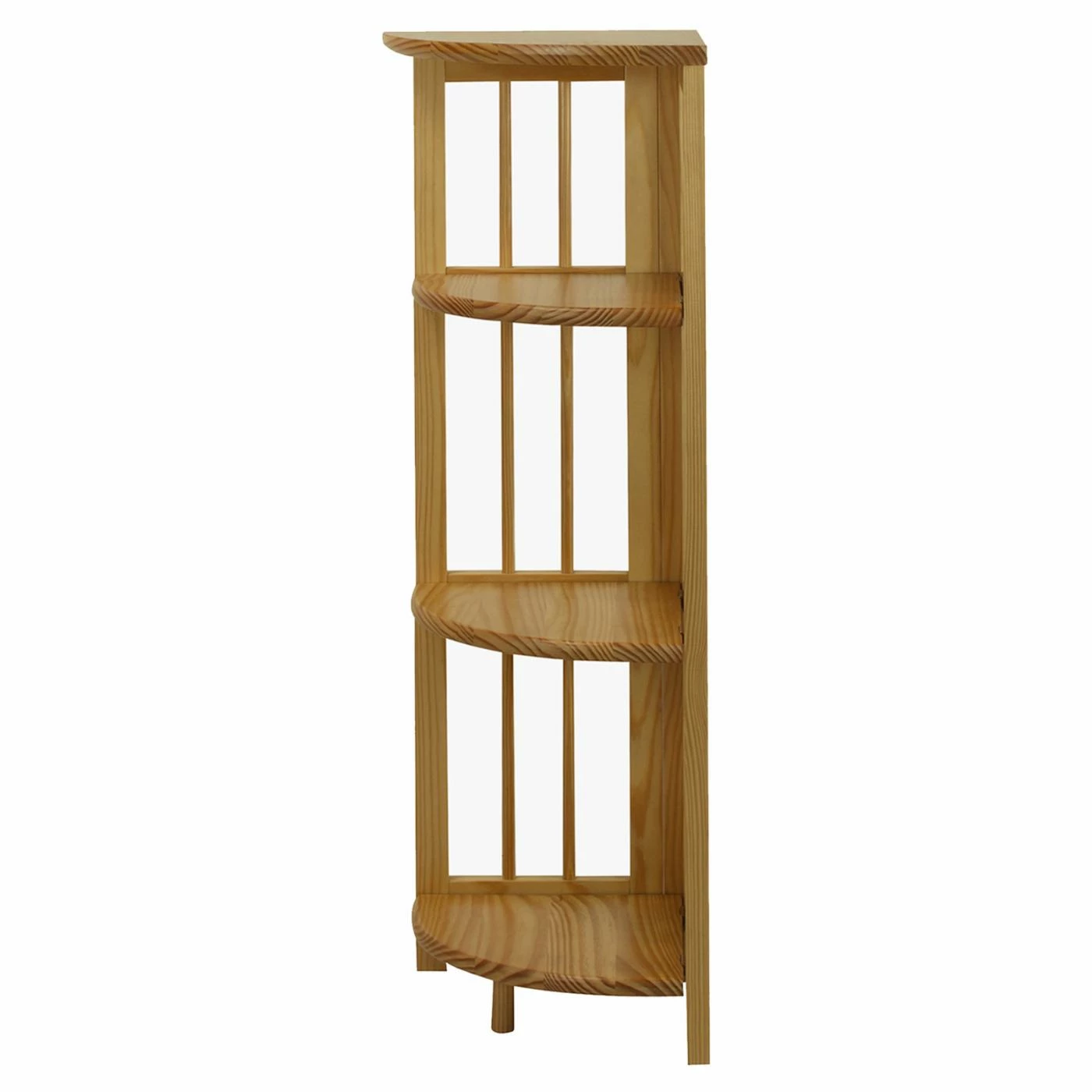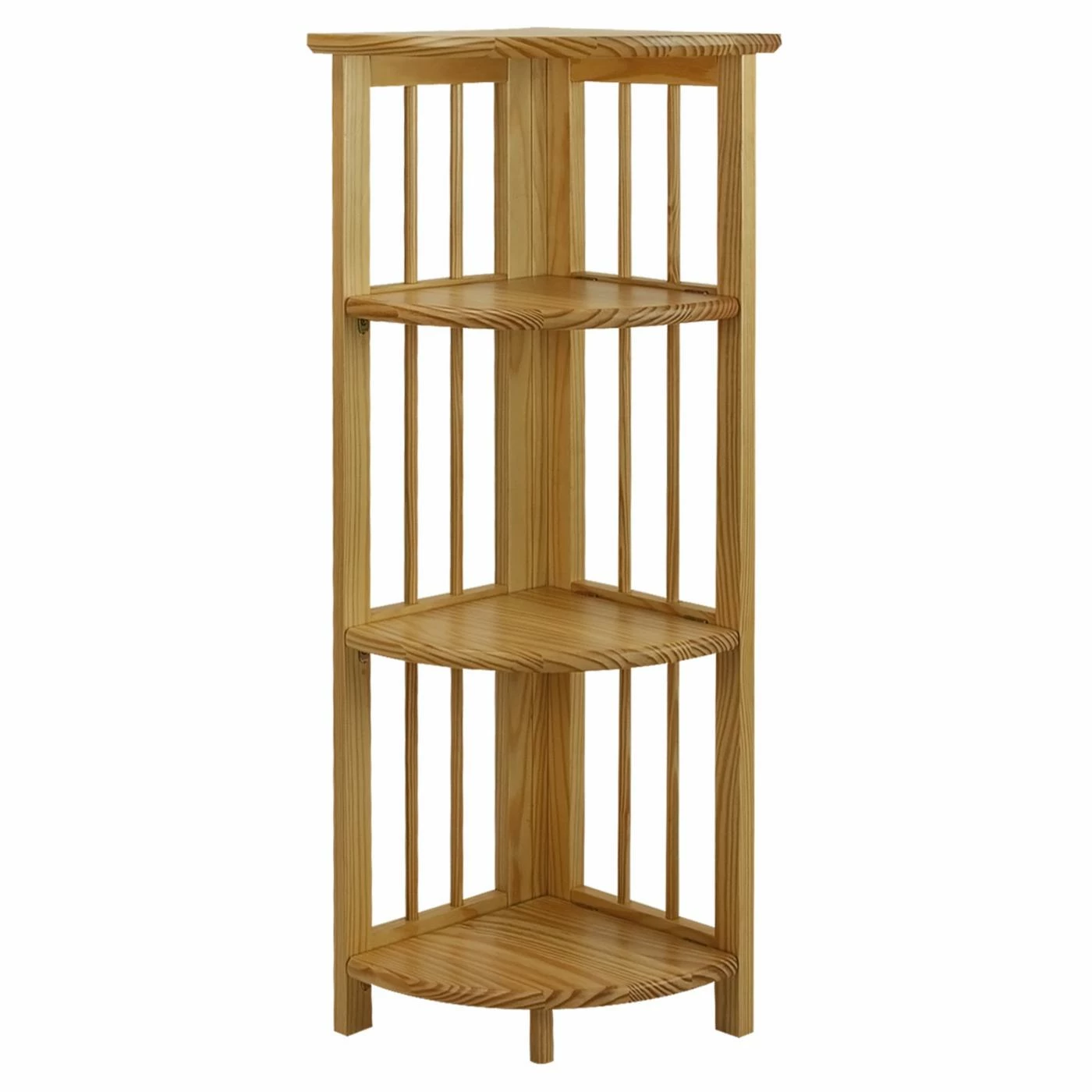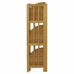 The Four-Tier Corner Folding Bookcase in Natural is a versatile style piece. This bookcase fits into any corner and offers four tiers of shelving to display books and picture frames. It has slender, decorative bars for a spacious look and is crafted of solid wood with a natural finish to match any decor. This bookcase folds flat, so it travels well and is handy to move from place to place.