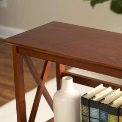 - Spacious shelves with X-details on sides